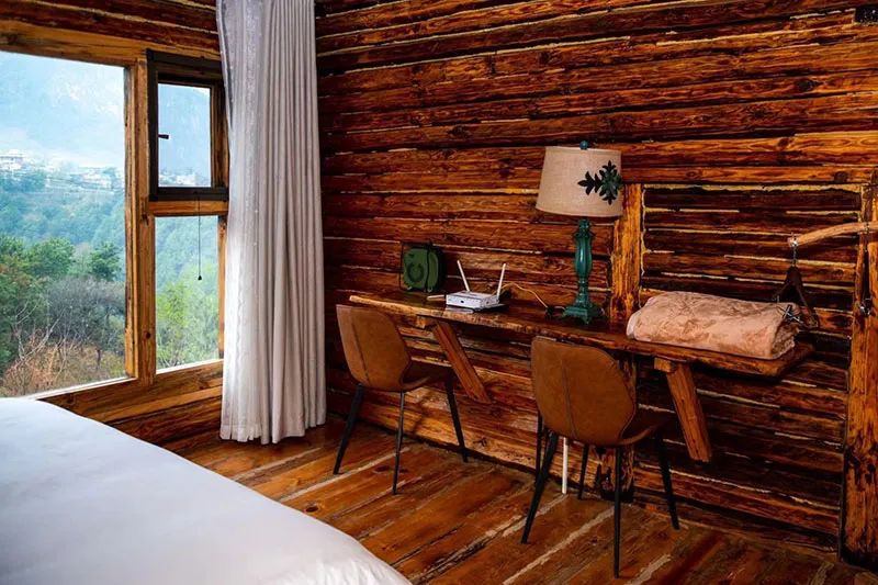 那一朵民宿位于貢山縣丙中洛鎮丙中洛村納依朵小組,依山而建、伴村而居,那一朵民宿保留了當地怒族特色的傳統民居——木楞房。貢山氣溫低、濕度大,木楞房多是下部架空的干欄式建筑,順著山坡用長短不一的木樁或石頭將居住面架成水平,居住層被托離地面,起到防濕防潮的效果。那一朵民宿是將搭建原房屋的木材重新刷漆后再建,并進行了封縫處理,將木材間的空隙堵住,防止漏風和蚊蟲進入,在不破壞房屋原始特色的基礎上,結合現代工藝對房屋做改造和裝飾,讓游客既能感受到原汁原味的特色木楞房,又能有舒適的入住體驗。