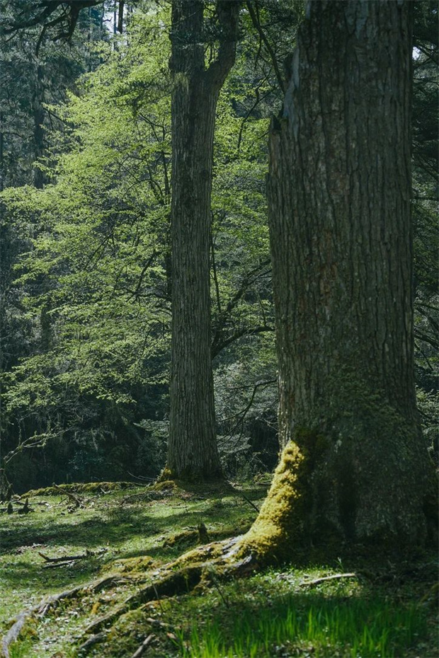 忘了年歲的杉木,原始的蕨類植物,和無處不在的青苔偎依生長。溪流、鳥鳴和風吹樹葉的聲音交雜成森林的歡聲笑語