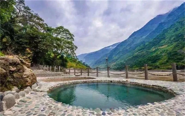 此時來到依偎在江畔的登埂澡塘,泉水溫熱而舒適,宛如大自然的懷抱,輕輕包裹著身體。一踏入溫泉池,頓時感覺疲